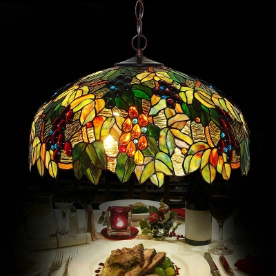 Tiffany Vintage Style Multi-Color Glass Grapes Pendant Chandelier for Cafe/Bar/Entryway