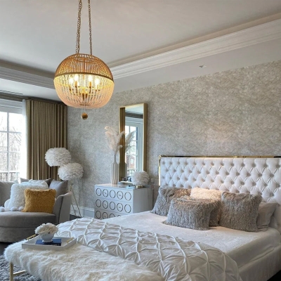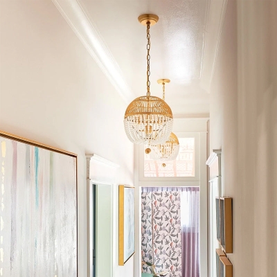 Bohemia Sphere Light Wooden Beads Pendant Candle Chandelier for Bedroom/Foyer/Entrys/Living Room