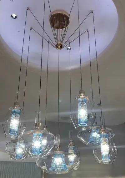 Extra Long Glass LED Droplight Chandelier Pendant for Staircase/Foyer