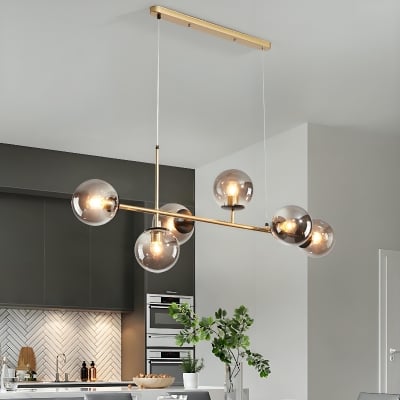 Modern Style 6 Lights Globe Glass Linear Pendants