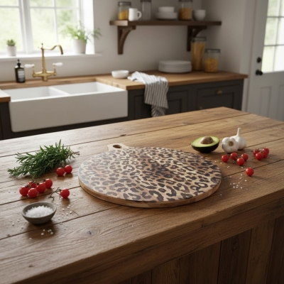 Lepwood Premium Leopard Print Mango Wood Chopping Serving Board for Table Styling and Entertaining